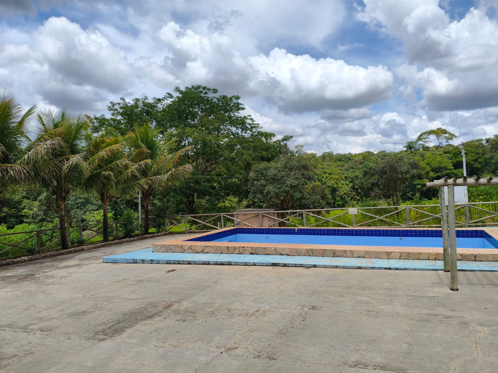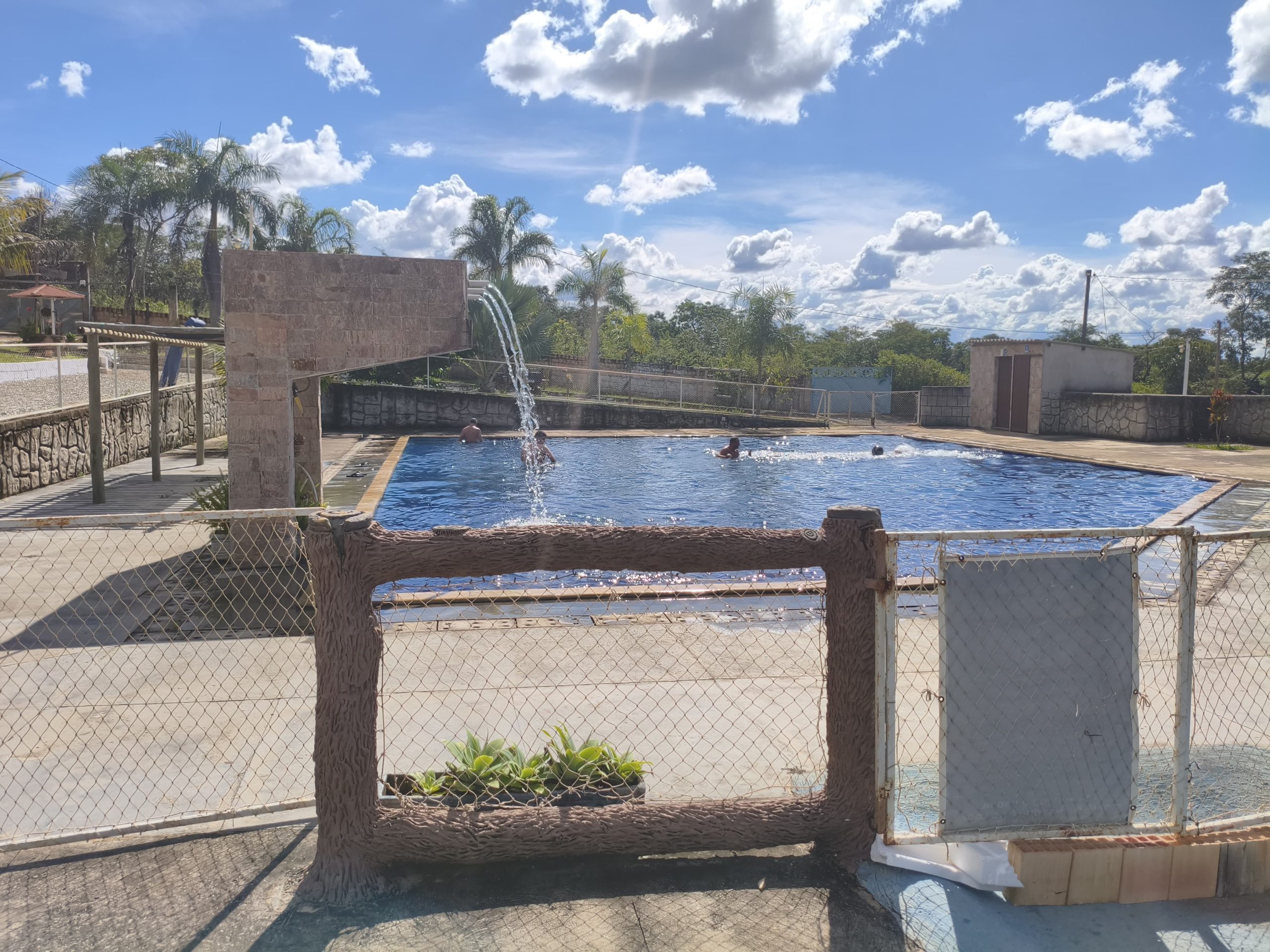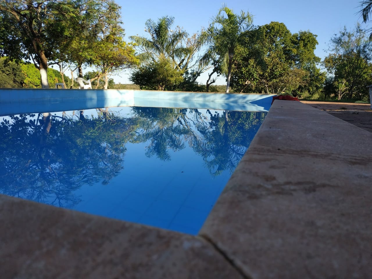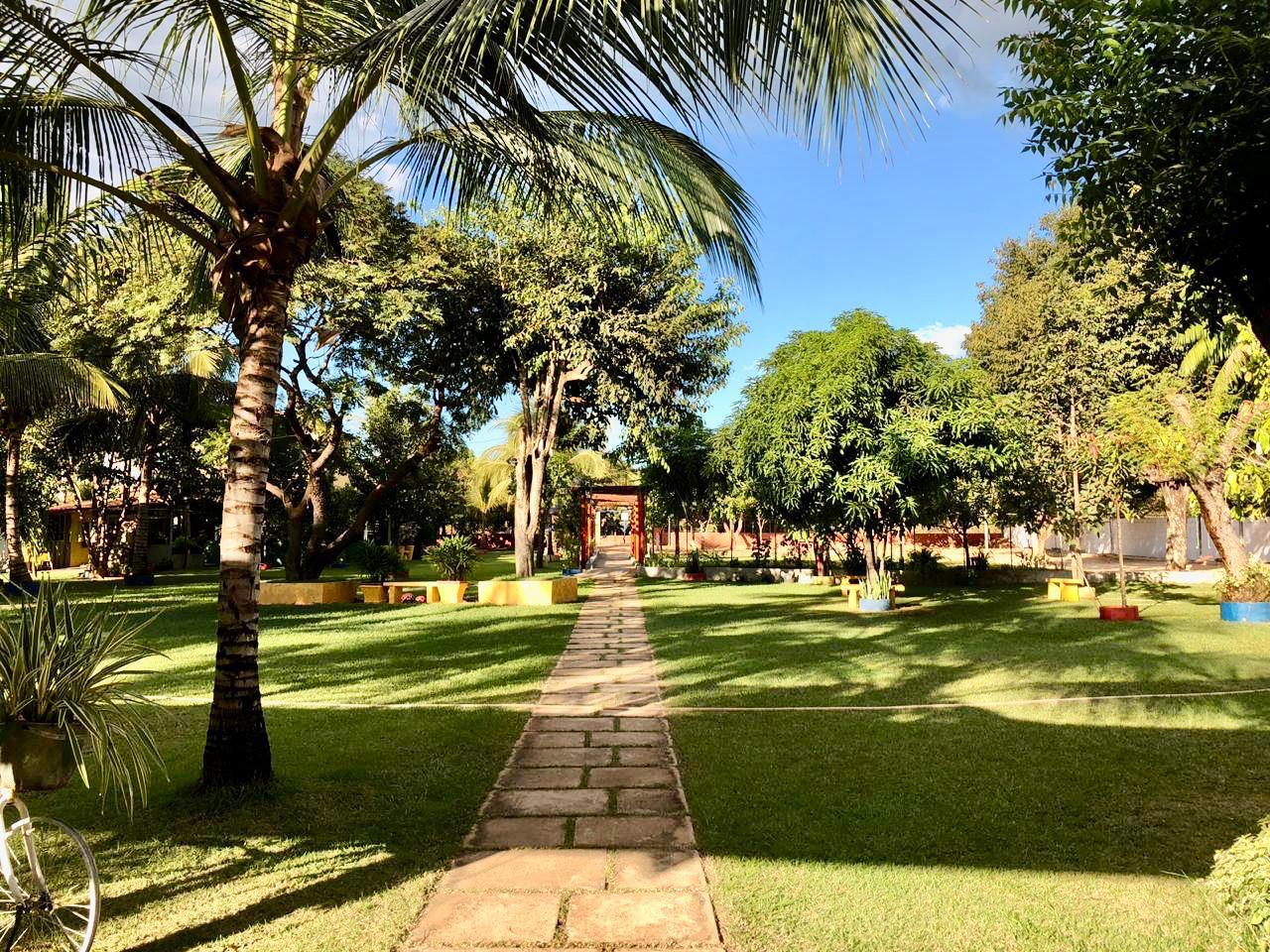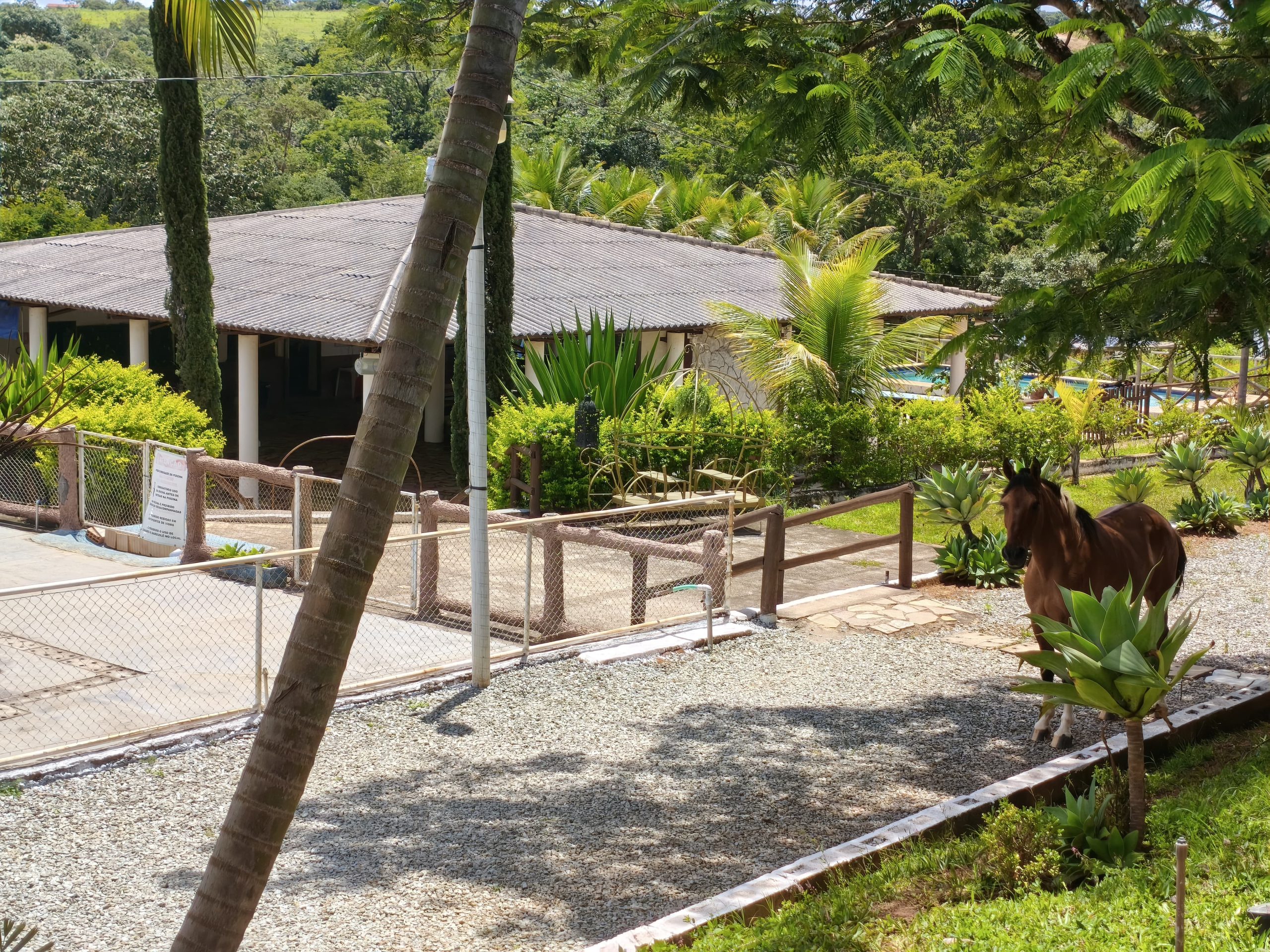 Ambientes equipados com piscina, academia, campo e quadra para esportes, refeitório, além de uma área ampla.